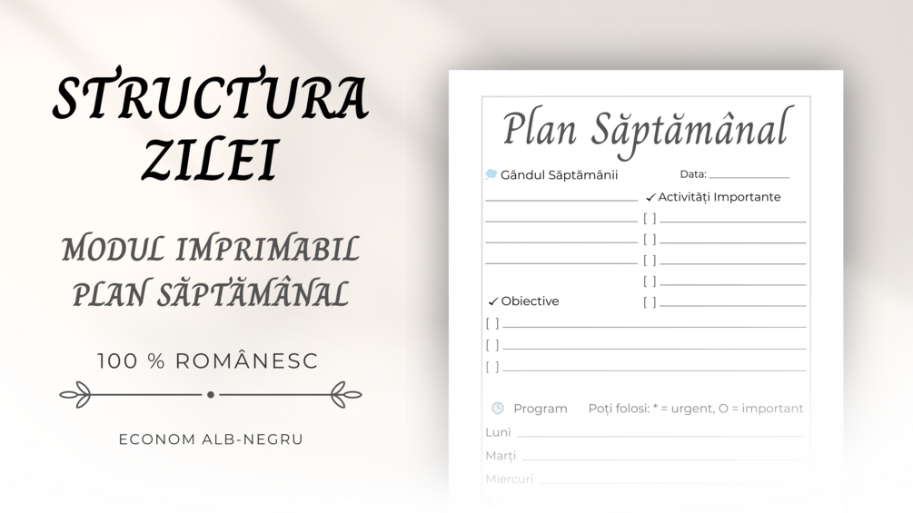 Structura Zilei - Modul Imprimabil - Plan Săptămânal